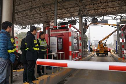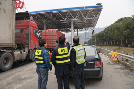圖為集團(tuán)總工程師江輝現(xiàn)場(chǎng)了解自助發(fā)卡機(jī)使用情況 江輝一行首先來(lái)到臺(tái)州收費(fèi)站,查看ETC高清抓拍及內(nèi)外廣場(chǎng)攝像頭安裝情況,對(duì)現(xiàn)場(chǎng)安裝人員近階段不顧嚴(yán)寒天氣,奮力搶修的積極工作態(tài)度表示感謝,并一再叮囑趕工的同時(shí)要做好自身的抗寒保暖。江輝還在現(xiàn)場(chǎng)咨詢了解該收費(fèi)站兩臺(tái)自助發(fā)卡機(jī)運(yùn)行情況,并親自對(duì)司乘人員取卡等使用流程進(jìn)行規(guī)范化指導(dǎo)。