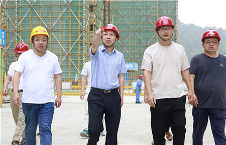 圖為集團總經(jīng)理張建平向工程團隊了解項目建設情況