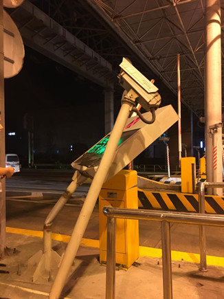 7月5日22點03分,機電設備維養(yǎng)中心接到臺州收費所當班班長小馬電話,稱該所ETC入口綜合顯示屏及抓拍攝像頭被一輛大客車撞彎,事故還導致出口欄桿不能正常工作,影響了出口車輛正常通行。