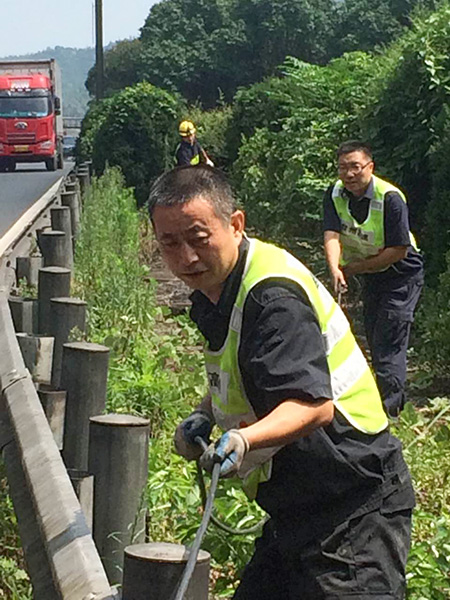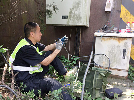 圖為修復(fù)后的隧道口路燈 對(duì)于修復(fù)被盜電纜,一般最直接的做法是重新再拉一根新電纜至配電箱,利用箱內(nèi)現(xiàn)成的控制開關(guān)和交流接觸器等元器件,完成整個(gè)電纜連接工作,但中心隊(duì)員考慮到此種方法不僅工作量大,修復(fù)成本高,而且存在再次被盜的可能性,如果用鋁線代替,電力傳輸又要大打折扣。于是,他們另辟蹊徑,計(jì)劃從剩余配電箱至路燈還有200余米未被盜取的電纜中截取一段,直接和洞口情報(bào)板電纜相接,這樣既能節(jié)省人力、物力,又能以最快速度恢復(fù)路燈正常工作。 當(dāng)天一早,中心隊(duì)員帶上相應(yīng)的工具和設(shè)備直奔現(xiàn)場(chǎng),在確認(rèn)電纜位置及走向后,便著手抽離洞內(nèi)電纜??紤]到洞口到配電箱電纜至少有100余米,電纜溝下面又鋪有其他眾多電纜以及之前掉落的垃圾,直接從洞口抽離根本無法動(dòng)彈。于是,中心4名隊(duì)員便每隔10米左右用撬棍撬開上面水泥蓋板,整個(gè)人跳進(jìn)電纜溝內(nèi),彎著腰一段一段抽離。抽到最后一個(gè)溝時(shí),4人頂著烈日,齊力把重達(dá)近百斤電纜抽離整個(gè)電纜溝并放置在護(hù)欄內(nèi)側(cè)草地上,隨后再從抽出的這段電纜中剪取適當(dāng)長(zhǎng)度,重新鋪設(shè)后與寧向出洞口的情報(bào)板電纜相接。 臨近中午,戶外溫度不斷升高,中心隊(duì)員早已濕透衣背,為趕在一天中最熱的時(shí)間點(diǎn)前完成任務(wù),4名隊(duì)員臨近解決午餐又迅速奔赴現(xiàn)場(chǎng),拆除原配電箱內(nèi)的舊器件,將其用回到新的供電線路中,而多余的器件則捆綁打包帶回中心以留備用,節(jié)省公司后期維養(yǎng)成本。 下午1:40,經(jīng)過通電測(cè)試,9盞路燈全部恢復(fù)正常工作。集團(tuán)總工程師江輝在工程部微信群里肯定了中心工作,并提醒一線人員切記做好防暑降溫工作,注意自身身體狀況。