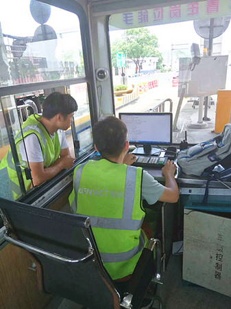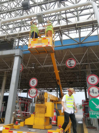 圖為工作人員對天線聯(lián)調(diào)測試 8日9日中午1點30左右,正是一天中最熱的時間,天線廠家?guī)еO(shè)備來到收費所,中心人員便放棄午休時間和早已在外廣場待命登高車駕駛員一起,協(xié)助廠家技術(shù)人員更換離地面6米余高的RSU天線盒。由于天線盒上方?jīng)]有安裝任何遮擋設(shè)備,長年日曬雨淋導(dǎo)致上方固定螺栓都出現(xiàn)生銹打滑,拆卸難度徒增,不到十分鐘,我們工作人員便濕透了全身,但大家還是咬咬牙,為盡快恢復(fù)車道正常行駛,保證車道便捷暢通而繼續(xù)埋頭苦干。在經(jīng)過近一個小時努力,終于將新的天線盒成功安裝,最后經(jīng)過聯(lián)調(diào)測試,恢復(fù)了車輛正常讀卡。 通過對新天線盒“上任”后數(shù)天觀察,發(fā)現(xiàn)該ETC車道讀卡失敗率明顯下降,車輛通過率達(dá)到了99.7%。如此一來,大大提高了車輛通行效率,距打造“智慧高速”目標(biāo)又邁進(jìn)了一步。