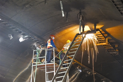圖為施工現(xiàn)場,工人在隧道內(nèi)作業(yè)