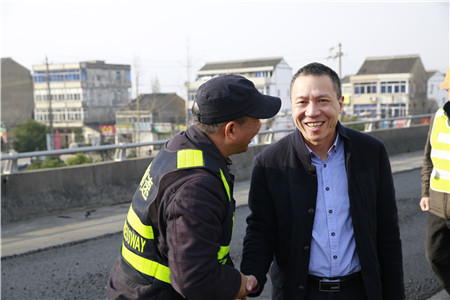 在施工現(xiàn)場,張建平對路面專項養(yǎng)護綜合督查組馮濟爐和葉榮江兩位同志說,你們就是公司的眼睛,要把握施工現(xiàn)場動態(tài),把好施工質(zhì)量和安全關;你們是公司的手,要督促工程保質(zhì)保量快速推進。這是一次確立科學養(yǎng)護理念、鍛煉管養(yǎng)人才,展示公司硬實力的機會??粗@兩位老同志被陽光曬得黝黑的臉龐,張建平緊緊地握住他們的手,連聲對他們說:“你們辛苦了,你們辛苦了!”