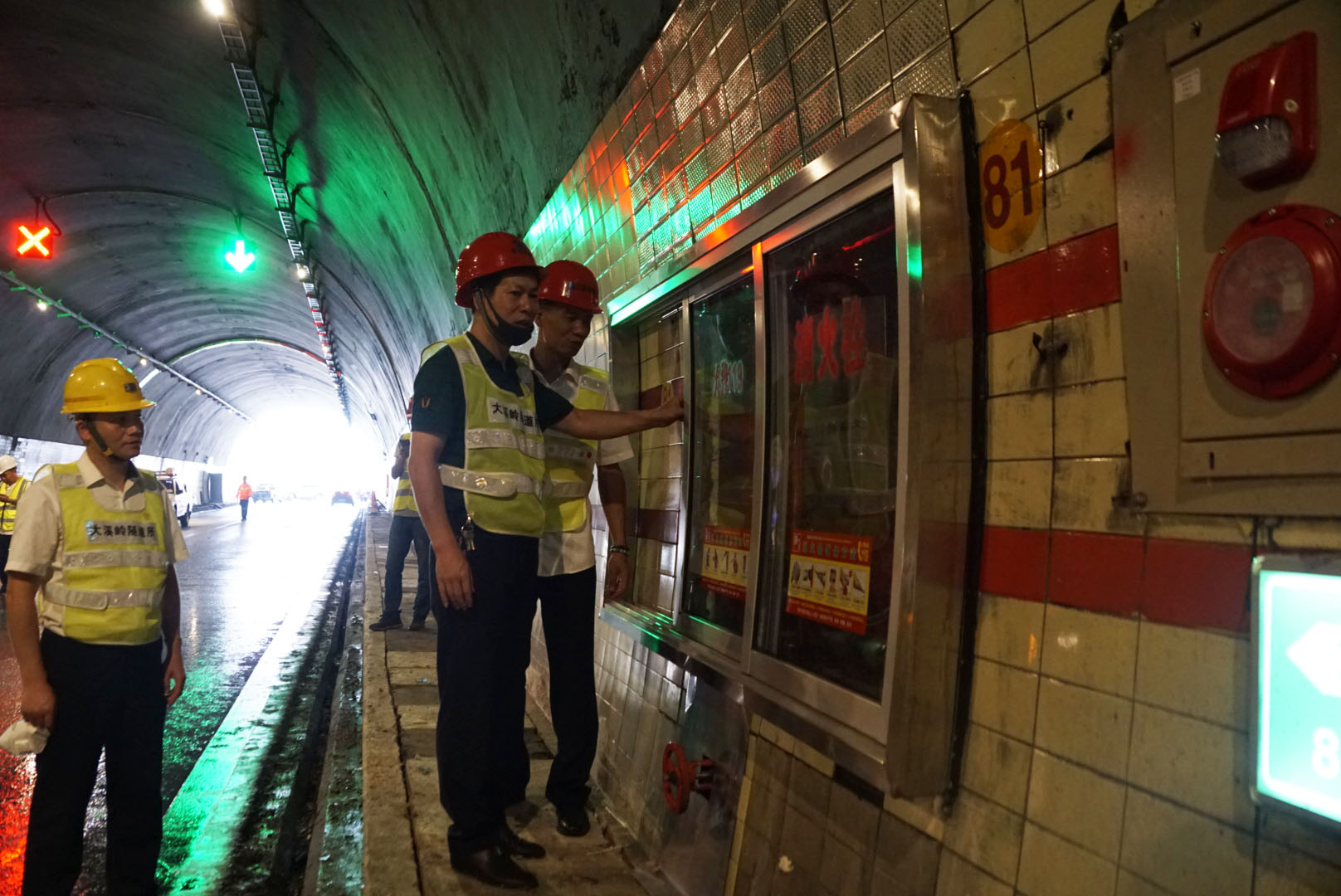 驗(yàn)收小組人員佩戴安全帽,身著反光背心,從寧向隧道北洞口開始,以徒步方式開展驗(yàn)收。每次途經(jīng)改建之地,他們便仔細(xì)檢測,著重對機(jī)電設(shè)備安裝調(diào)試效果、消防設(shè)施配備、緊急電話安裝、蓋板更換、瓷磚修復(fù)及清洗情況等進(jìn)行仔細(xì)排查驗(yàn)收。