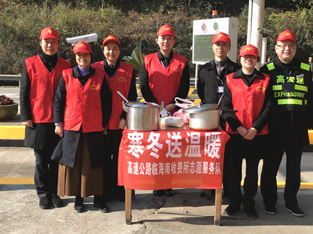 1月12日上午,臨海南收費所的收費員們走出崗?fù)?,開展了一場“寒冬送溫暖”活動。