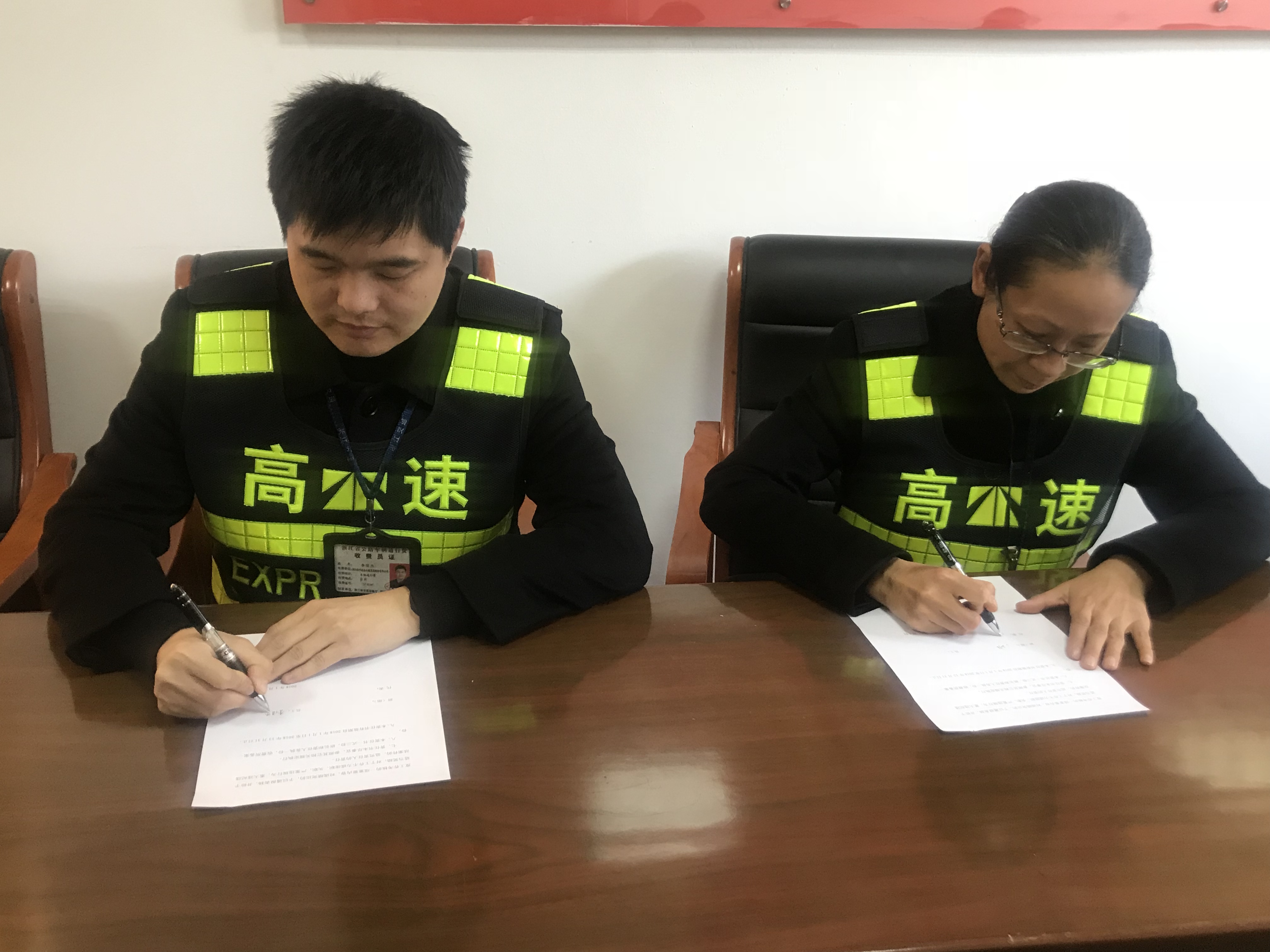 圖為黨支部書記與班長簽訂黨風(fēng)廉政責(zé)任書