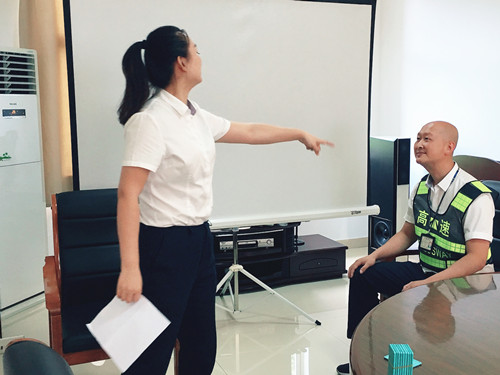 此次培訓(xùn)一改枯燥乏味的傳統(tǒng)形式,工作人員結(jié)合平時(shí)窗口實(shí)際工作,分別擔(dān)任角色扮演,生動(dòng)而又形象地演繹窗口服務(wù),真實(shí)地反映出收費(fèi)員在收費(fèi)過(guò)程中遇到的各類情景。比如:ETC車道無(wú)法正常通過(guò)、遇堵車分流、駕駛員情緒激動(dòng)、綠農(nóng)車混裝未達(dá)到免費(fèi)、入口如何勸離超限車輛等各類突發(fā)事件應(yīng)急處理辦法。