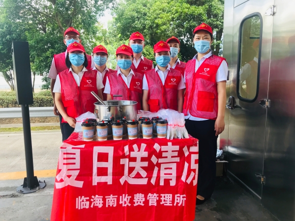 活動現(xiàn)場,志愿者們身穿耀眼的紅馬甲,面帶微笑,顯得格外耀眼動人。雖然大家的衣服早已被汗水浸透,但熱情周到的服務,獲得了過往司乘的紛紛點贊。臨海南收費所通過開展“夏日送清涼”活動,不僅送去了高速公路工作者的愛心,同時也拉近了與司乘人員之間的溝通交流,贏得了過往司乘人員的好評,塑造了良好的窗口形象。 除了為司乘送“清涼”,該所也真正做到把清涼送到收費一線,把關懷送到員工心坎,保障員工的健康權益,為員工提供了清涼油、克痢痧、午時茶、藿香正氣水等防暑降溫物品。食堂每天精心熬制不重樣甜湯,大家喝到提前冷涼的甜湯紛紛表示,三伏天里,雖然感到悶熱難受,但在休息的時候能喝上一碗涼涼的甜湯,真幸福。并保證一定會克服酷暑高溫,堅守崗位,盡職盡責,積極投身于收費、交通疏導工作中。