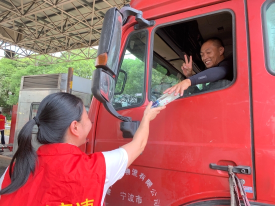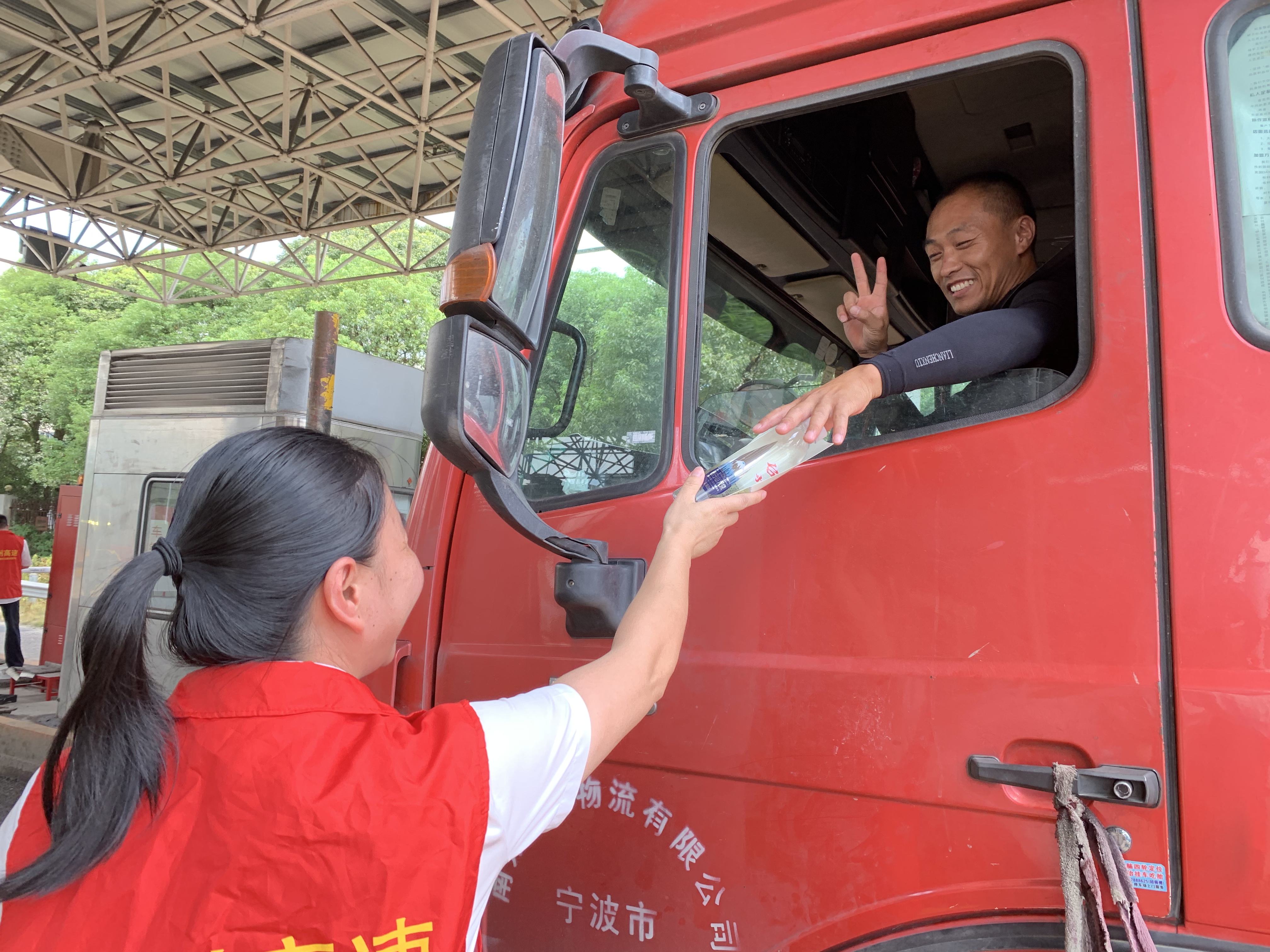 “師傅辛苦了,注意行車安全。”宣傳現(xiàn)場(chǎng),烈日焦灼,志愿者們向過(guò)往的司乘人員發(fā)放宣傳冊(cè),并遞上礦泉水,獲得過(guò)往司乘的肯定。