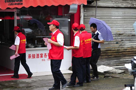 圖為志愿者隊合影 由部分非當班黨員,青年團員組成的第一支志愿小分隊,趕赴沙埠鎮(zhèn),與沙埠鎮(zhèn)鎮(zhèn)政府一起開展創(chuàng)建全國文明城市的宣傳活動。小分隊統(tǒng)一身著印有的 “臺州高速臺州南收費所志愿服務(wù)隊”的紅色馬甲,在沙埠鎮(zhèn)有關(guān)同志的陪同之下,冒雨沿街分發(fā)創(chuàng)建全國文明城市的宣傳資料,并逐一耐心講解創(chuàng)建工作的有關(guān)注意事項。 沙埠鎮(zhèn)沿街衛(wèi)生秩序較好,但局部角落還是存在一定的臟、亂問題,通過鎮(zhèn)工作人員和志愿者們的勸導(dǎo),群眾們紛紛表示要響應(yīng)創(chuàng)建全國文明城市的號召,從自身做起,為創(chuàng)建出一份力。 王樹聲