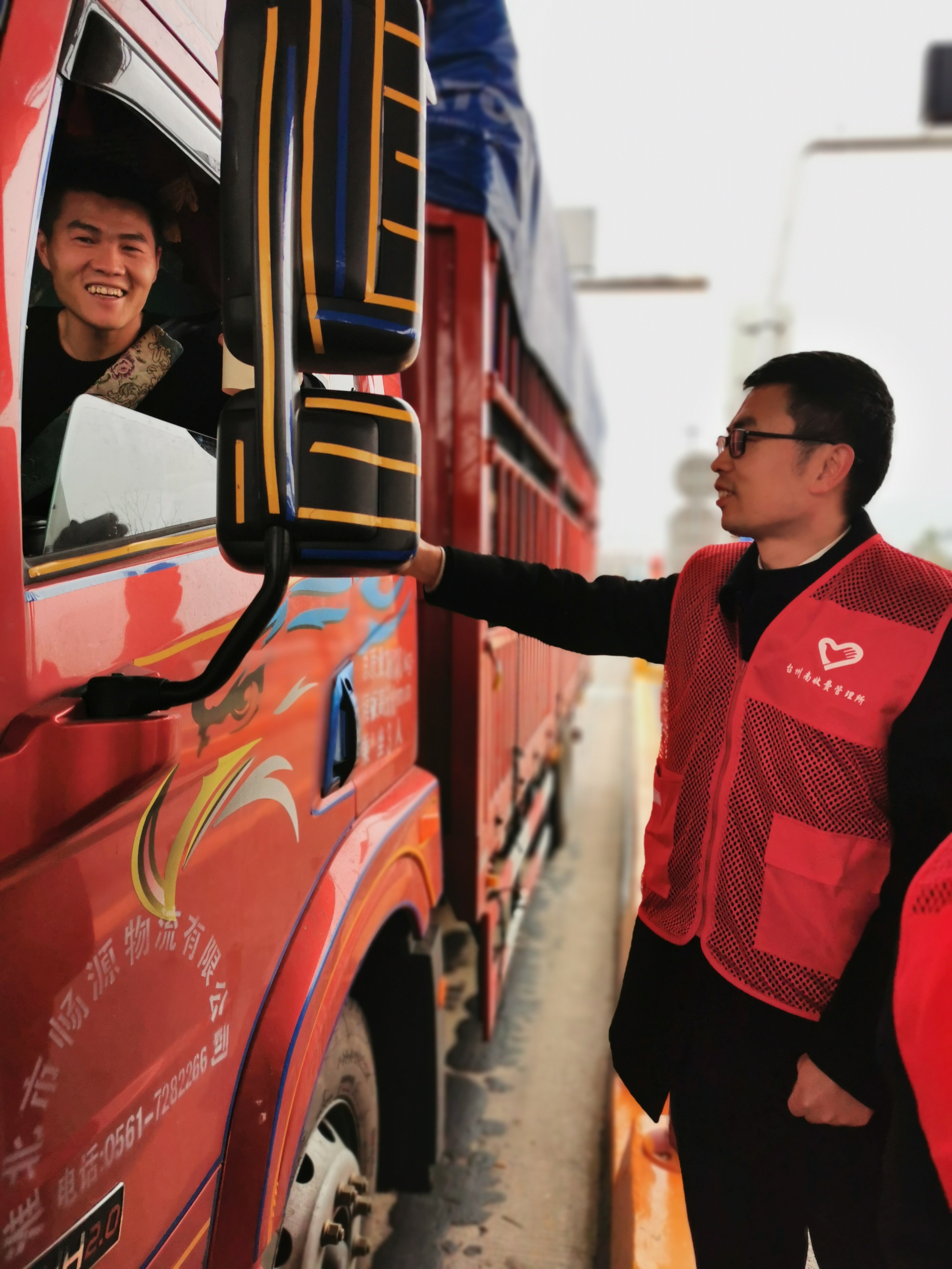當天上午,臺州各地迎來“2021年第一場雪”,志愿者們身著紅馬甲,在收費所崗亭安全島上搭起了愛心服務臺,迎著風雪準備送溫暖用品。10點左右,雪下得大了,寒意更甚,大家在收費過道上來來回回,將一杯杯熱乎乎的紅糖姜茶送到過往的司乘人員手中,并告知路況信息,提醒司機強冷天氣注意行車安全。司乘人員握著姜茶露出友好的笑容,令大家感受到了溫暖的力量。