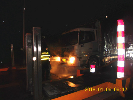 1月6日,一輛車牌為J52286的貨車著火,在收費(fèi)員楊丹妮的應(yīng)急救援下,成功控制住了火勢,沒有造成重大損失。 當(dāng)天凌晨6:18,天還未亮,溫嶺西收費(fèi)所還沉浸在一片安靜中,突然,收費(fèi)車道上傳來一陣急剎車的聲音,收費(fèi)員紛紛從倦意中驚醒。一輛車牌為浙J52286的貨車停在了收費(fèi)車道上,駕駛員從駕駛室直接跳下車跑到收費(fèi)窗口,急促地喊道:“有滅火器嗎?有滅火器嗎?車子著火了?!?/span>