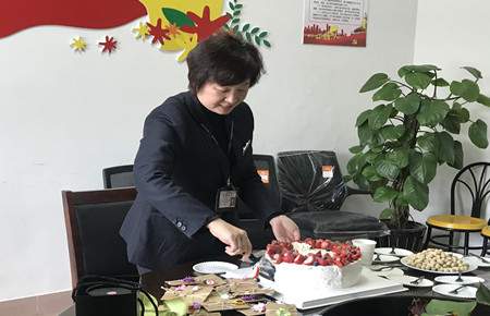 圖為陶秀英同志在歡送會現(xiàn)場切蛋糕 歡送會上,章海峰代表臺州高速,對陶秀英同志二十余年如一日為集團(tuán)發(fā)展所付出的辛勞和貢獻(xiàn)表示了衷心感謝,預(yù)祝她退休生活豐富多彩,也希望她退而不休,常回“家”看看。同時號召年輕員工學(xué)習(xí)陶秀英身上傳承勤勤懇懇、認(rèn)真踏實的態(tài)度與精神,為征費管理共努力,為集團(tuán)發(fā)展共拼搏。