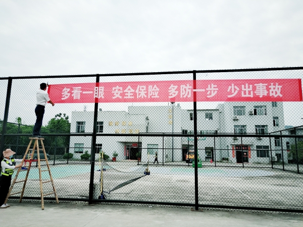 圖為懸掛安全宣傳標(biāo)語(yǔ)