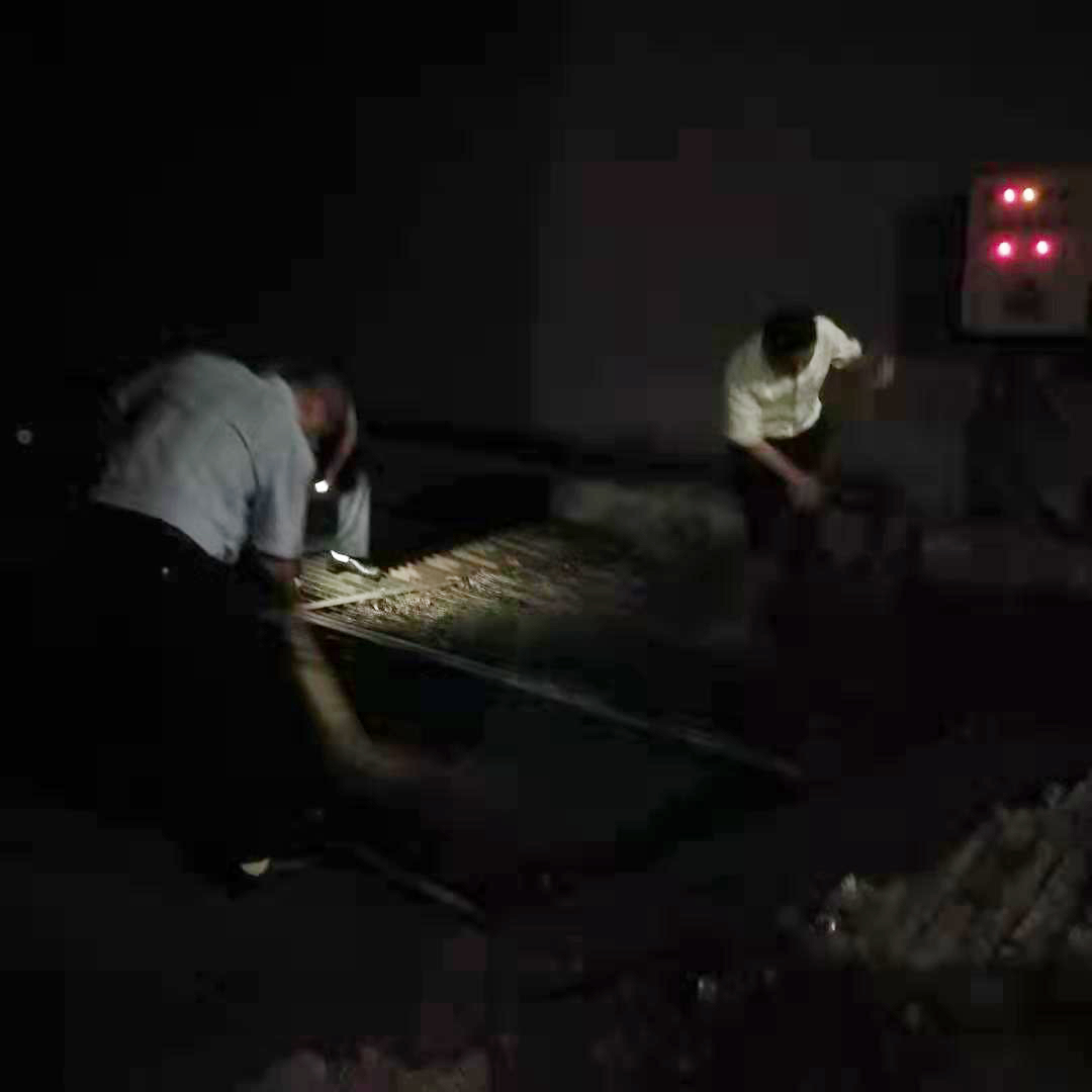 圖為車(chē)道水流 當(dāng)晚19:12分,黃土嶺隧道所中控員徐彤霞發(fā)現(xiàn)寧向隧道主車(chē)道路面出現(xiàn)積水,如不及時(shí)處置,路面濕滑會(huì)讓過(guò)往車(chē)輛打滑,嚴(yán)重影響隧道的安全暢通。為了杜絕安全隱患,管理所立即啟動(dòng)防汛應(yīng)急方案,中控員第一時(shí)間在管理群發(fā)送現(xiàn)場(chǎng)圖片,并在同一時(shí)間通知執(zhí)勤隊(duì)與監(jiān)控中心。 執(zhí)勤隊(duì)員不顧狂風(fēng)暴雨趕赴現(xiàn)場(chǎng),19:19分,斜井現(xiàn)場(chǎng)山上倒灌入隧道的水嘩嘩直流,儲(chǔ)水池水流急促,執(zhí)勤隊(duì)員立即分工合作,一組在主車(chē)道擺放安全錐采取防護(hù)措施,并利用沙包,堵住排水溝壁,使水盡量不往外滲,及時(shí)避免了積水對(duì)隧道內(nèi)行車(chē)造成的安全隱患。一組檢查潛水泵是否正常運(yùn)行,查看積水入侵的原因、排水溝通暢情況。