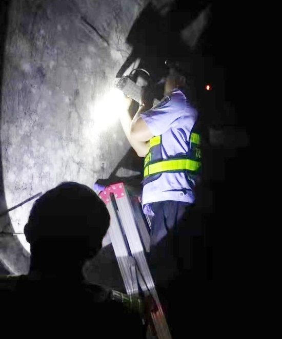 圖為斜井內(nèi)裝好的燈 此次工作任務(wù)的出色完成,不僅充分體現(xiàn)了黃土嶺隧道所執(zhí)勤隊員較高的業(yè)務(wù)水平和較強(qiáng)的團(tuán)隊協(xié)作能力,同時也是在工作崗位上踐行“不忘初心、牢記使命”主題教育精神,在履職盡責(zé)中彰顯黨性和本色。 林玲