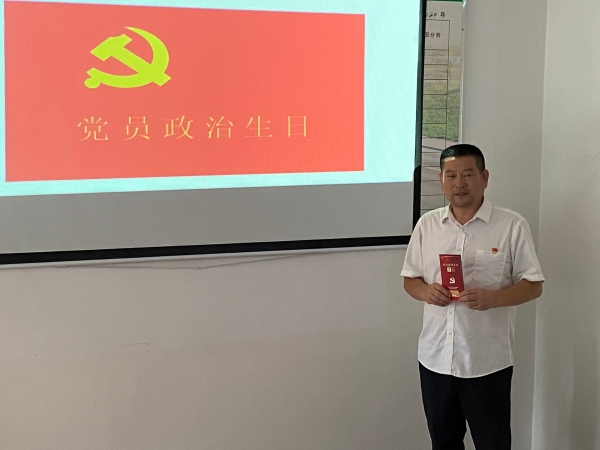 會(huì)議現(xiàn)場(chǎng),黨支部書(shū)記李海福向李學(xué)來(lái)贈(zèng)送“政治生日”賀卡,并送上“政治生日”祝福,讓李學(xué)來(lái)感受到來(lái)自黨組織的關(guān)懷。