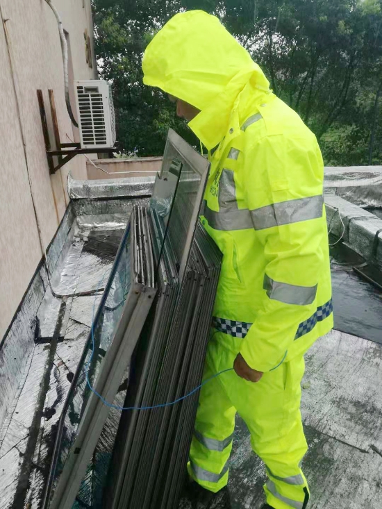 圖為工作人員捆扎散落的物品 8月9日上午,超強(qiáng)臺(tái)風(fēng)帶來(lái)強(qiáng)降雨,大溪嶺隧道所隊(duì)員們做好一切防臺(tái)準(zhǔn)備,備好發(fā)電機(jī)所需燃油,保證所有車輛車況良好并加滿油;充分備好繩索、應(yīng)急燈、雨衣雨靴、藥品、食物等防臺(tái)物資;檢查各類通訊線路,確保內(nèi)部通訊電話、報(bào)警電話等重要線路暢通;放下北廣場(chǎng)的二高桿燈。隊(duì)員們爬到屋頂,對(duì)散落的物品進(jìn)行捆扎,并疏通堵塞的排水管,確保排水設(shè)施良好。所有人員全力做好防臺(tái)部署工作和防御措施,確保大溪嶺隧道一切設(shè)備正常運(yùn)行,隧道平安暢通。 陳智慧