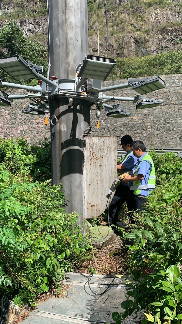 03:22分,隧道停電,電工立即去配電房查看并進行搶修。此時風大雨大,估計最大風力11級以上。