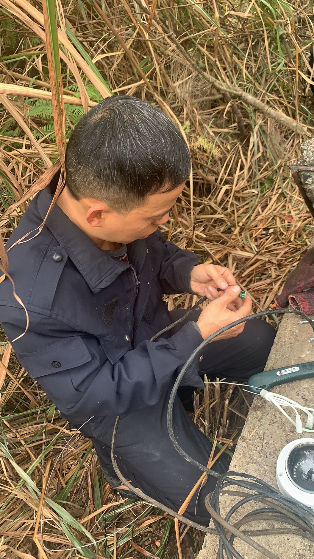大溪嶺南高位水池地點在溫州地界,山體較高,攀行需要近一個小時,金所得知情況后,立即帶著執(zhí)勤隊上山到高位水池檢查,他們背著工具箱,戴著手套、拿著柴刀,經(jīng)過一個小時的披荊斬棘來到南高位水池的井口,金所爬到井里進行檢查,發(fā)現(xiàn)光纜和電線都被老鼠咬斷了,才導致圖像不能工作,當場把電線接了回去,并回所準備其他材料,明日再次登山修理。