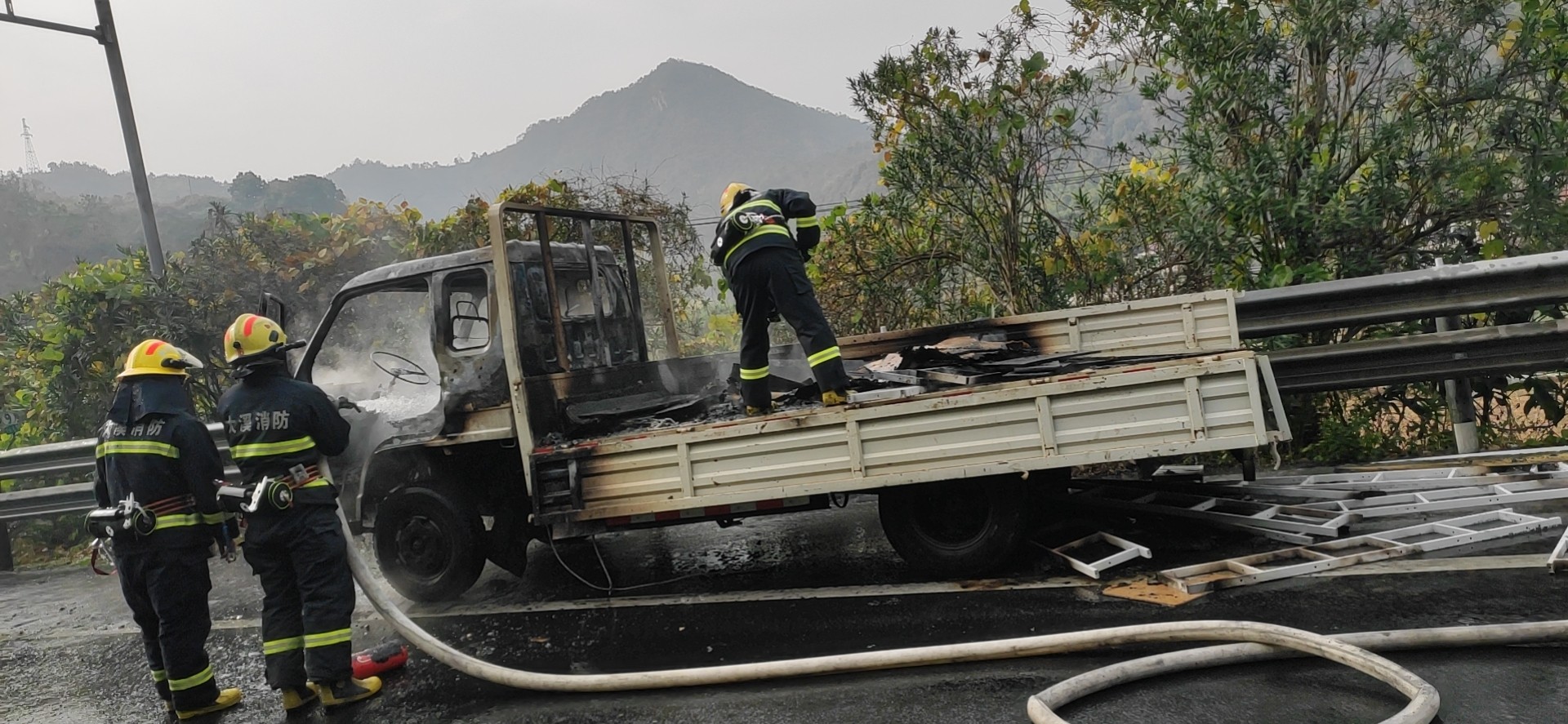 大溪嶺溫向隧道口發(fā)生貨車(chē)火災(zāi) |