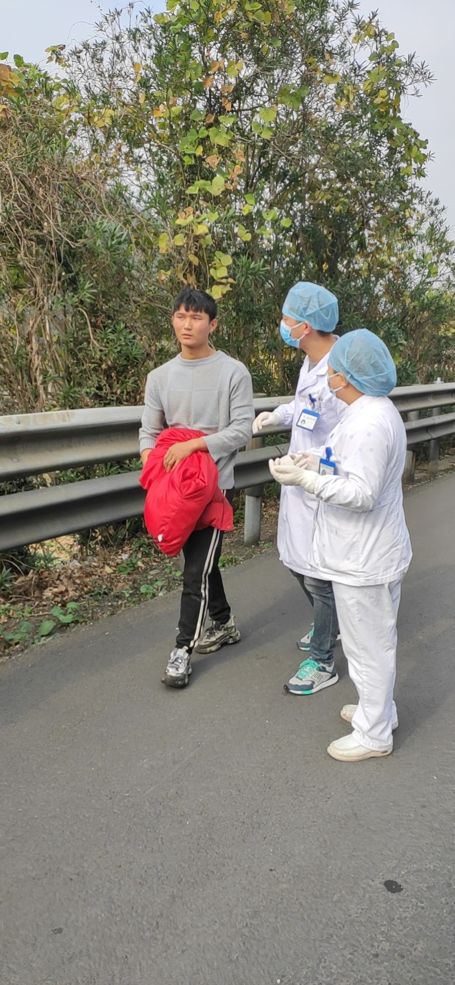 12月13日12:48中控發(fā)現(xiàn)溫向隧道入洞口600米處的情報(bào)板下濃煙滾滾,中控切換火災(zāi)圖像至監(jiān)控中心。并啟動(dòng)火災(zāi)報(bào)警系統(tǒng),按下火災(zāi)按鈕,由于著火點(diǎn)距離隧道北廣場(chǎng)最近的消火栓有500百米,隊(duì)員們出警時(shí)從倉(cāng)庫(kù)里取出數(shù)只滅火器,由于車(chē)輛未實(shí)施封道,車(chē)輛一直在事故車(chē)旁邊呼嘯而過(guò),給現(xiàn)場(chǎng)救援帶來(lái)難度,王宇鵬、湯寧光、陳幸?guī)е鴾缁鹌黠w奔去滅火,巡邏車(chē)準(zhǔn)備駛?cè)胧鹿受?chē)后進(jìn)行封道預(yù)警。
