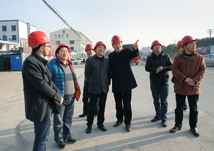 圖為總經(jīng)理張建平在8#立交工地聽取工程介紹