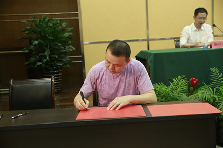 圖為公司黨委副書記、總經(jīng)理張建平與部門(子公司)負責人簽訂《黨風廉政建設(shè)責任書》