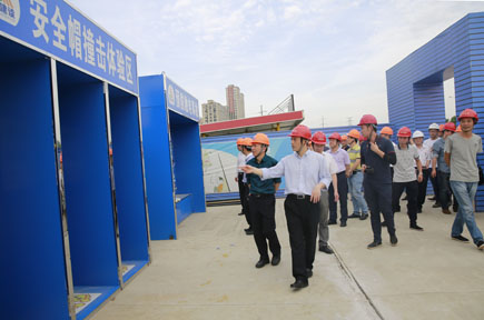 臺(tái)州基投集團(tuán)公司副董事長(zhǎng)、總經(jīng)理王輝帶領(lǐng)導(dǎo)大家參觀了安全生產(chǎn)體驗(yàn)區(qū)和浙江大學(xué)臺(tái)州研究院(臺(tái)州科技城綜合區(qū))項(xiàng)目建設(shè)現(xiàn)場(chǎng),介紹了公司的發(fā)展?fàn)顩r、“五新”發(fā)展經(jīng)驗(yàn),企業(yè)文化理念、愿景和核心價(jià)值觀,以及工程管理工作經(jīng)驗(yàn)。
