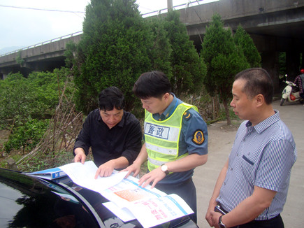 圖為公司安全總監(jiān)項(xiàng)同富與高速路政人員在現(xiàn)場(chǎng)討論整治方案 之前,高速路政大隊(duì)通過巡查,發(fā)現(xiàn)公司部分高速橋下存在較多堆放雜物、傾倒垃圾等現(xiàn)象,便提出了在橋下安裝禁令標(biāo)牌的初步方案,方案包括告示牌設(shè)計(jì)內(nèi)容和具體安裝位置。 自接到該大隊(duì)的初步整改方案通知后,公司積極配合,迅速召集相關(guān)部門開展行動(dòng),再次檢查有問題的部位,并根據(jù)檢查情況細(xì)化整改方案,以及具體落實(shí)禁令標(biāo)牌安裝形式、位置、尺寸等事宜,以更合理、科學(xué)地解決問題。 陳科