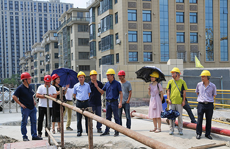 圖為集團(tuán)副董事長、總經(jīng)理張建平在文鼎苑項目工地了解工程進(jìn)度情況