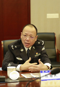 圖為高速交警支隊(duì)支隊(duì)長(zhǎng)陳國(guó)民在會(huì)上講話(huà)