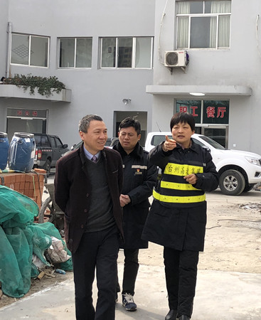 圖為公司總經(jīng)理張建平檢查溫嶺西收費(fèi)所在建生活區(qū)域