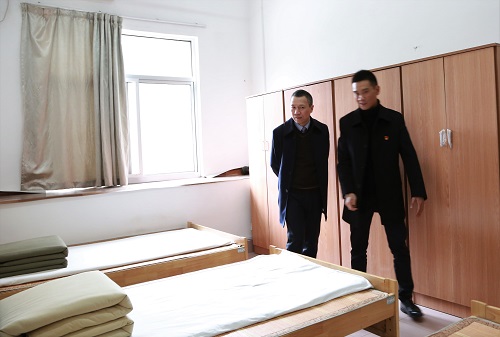 圖為集團(tuán)總經(jīng)理張建平查看員工寢室
