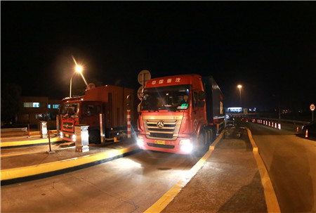 臺(tái)州南、溫嶺西收費(fèi)所,分流9點(diǎn)開始,由于夜間通行貨車居多,每輛需計(jì)重收費(fèi),且夾雜綠農(nóng)車,情況復(fù)雜,分流1個(gè)小時(shí)后出口車道已排成車燈長(zhǎng)龍,壓力巨大?!奥房趨f(xié)警一定要守住第一道防線,不能讓任何車輛進(jìn)入!”富有經(jīng)驗(yàn)的所長(zhǎng)王益民已在車道上與交通協(xié)管員一起指揮疏導(dǎo)交通了。從晚上10點(diǎn)到凌晨6點(diǎn),持續(xù)奮戰(zhàn)8個(gè)小時(shí),在有限的具有稱重能力車道的情況下,臺(tái)州南、溫嶺西共完成了5千多輛車的收費(fèi)工作,流量相比平時(shí)增加一倍。
