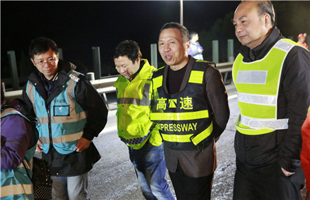 凌晨一點,張建平向工作人員表示了感謝,并叮囑他們一定要注意安全防護和做好保暖工作。此前,張建平還走訪了施救中心、維養(yǎng)中心、臺州收費所、黃土嶺隧道所等一線單位,他對站所整潔度、人員到崗情況表示了肯定。 張波
