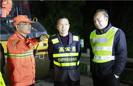 圖為集團總經理張建平夜訪養(yǎng)護施工一線