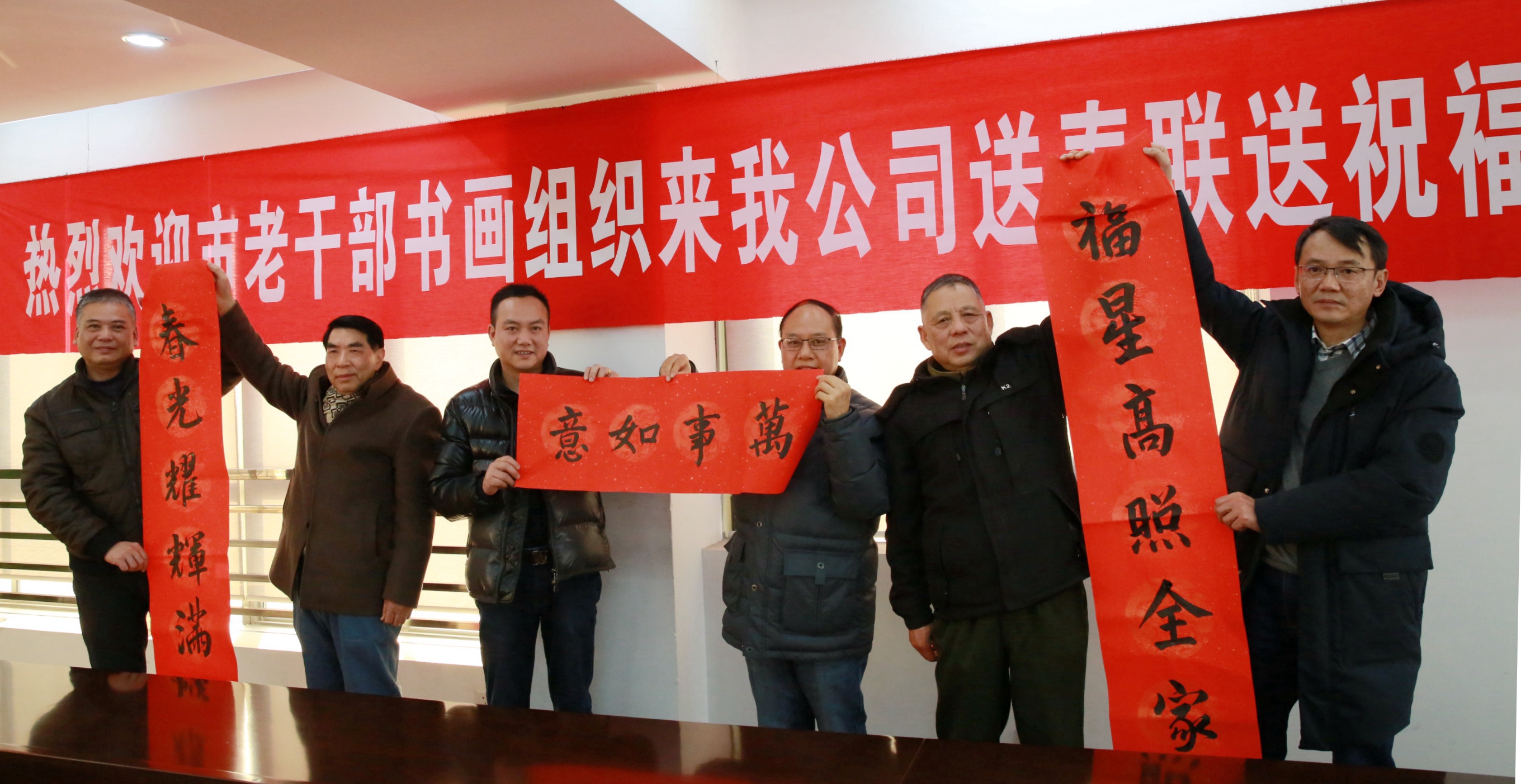 圖為公司副總經(jīng)理羅小將與老干部們合影 此次老干部們送來的春聯(lián)皆是他們親筆所作,受到了公司廣大職工的喜愛。