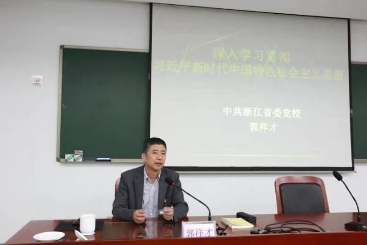 圖為省委黨校哲學(xué)教研部原主任、教授郭祥才以《習(xí)近平新時(shí)代中國特色社會主義思想》為題授課