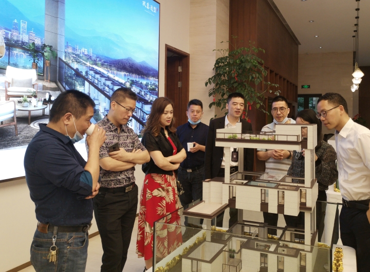 圖為陳文波對(duì)照?qǐng)D紙了解樓盤(pán)情況 在銷(xiāo)售展廳樓盤(pán)沙盤(pán)前,陳文波聽(tīng)取了高速房產(chǎn)(集團(tuán))公司負(fù)責(zé)人關(guān)于玖璽逸墅項(xiàng)目銷(xiāo)售計(jì)劃、認(rèn)籌客戶(hù)等情況匯報(bào)。他對(duì)前期房產(chǎn)公司的辛苦付出給予充分肯定,要求大家認(rèn)真服務(wù)好每一個(gè)來(lái)訪客戶(hù),彰顯出國(guó)企品質(zhì),全力做好銷(xiāo)售工作。 當(dāng)天,銷(xiāo)售展廳樓內(nèi),陸陸續(xù)續(xù)有客戶(hù)進(jìn)出,“我很早就看中這個(gè)樓盤(pán)了,不僅位置好,而且采光好、通風(fēng)好,居住在這里一定非常舒服?!币幻麥?zhǔn)客戶(hù)張女士夸贊道,今天她特意前來(lái)交付認(rèn)籌金。  圖為客戶(hù)在疊墅沙盤(pán)前參觀