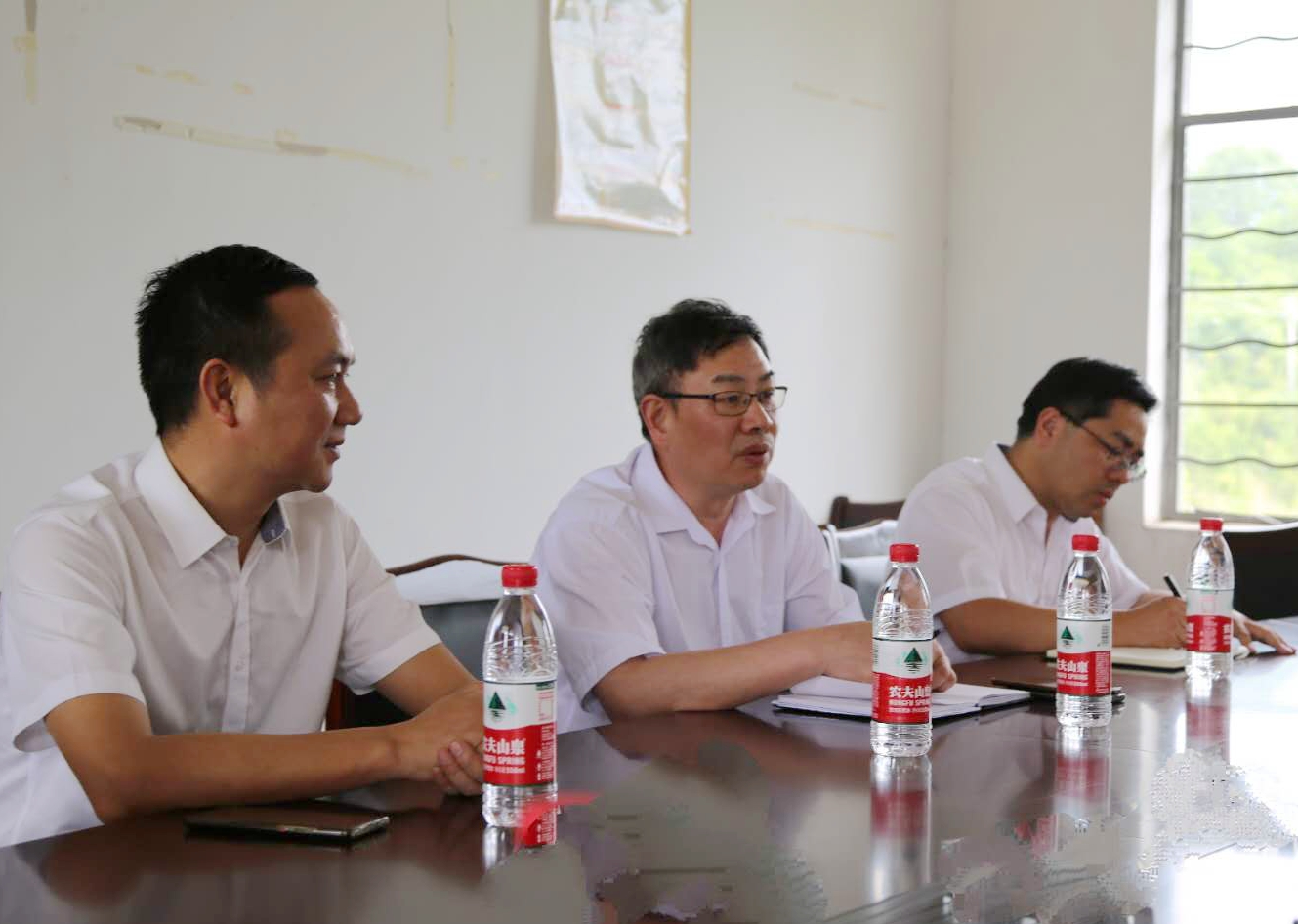 圖為走訪塘上村的領(lǐng)導(dǎo)認(rèn)真傾聽村里情況匯報(bào)