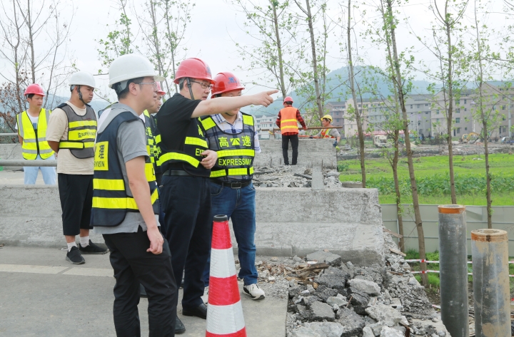 圖為陳文波在溫嶺西收費(fèi)站匝道橋梁維修工程現(xiàn)場(chǎng)了解情況