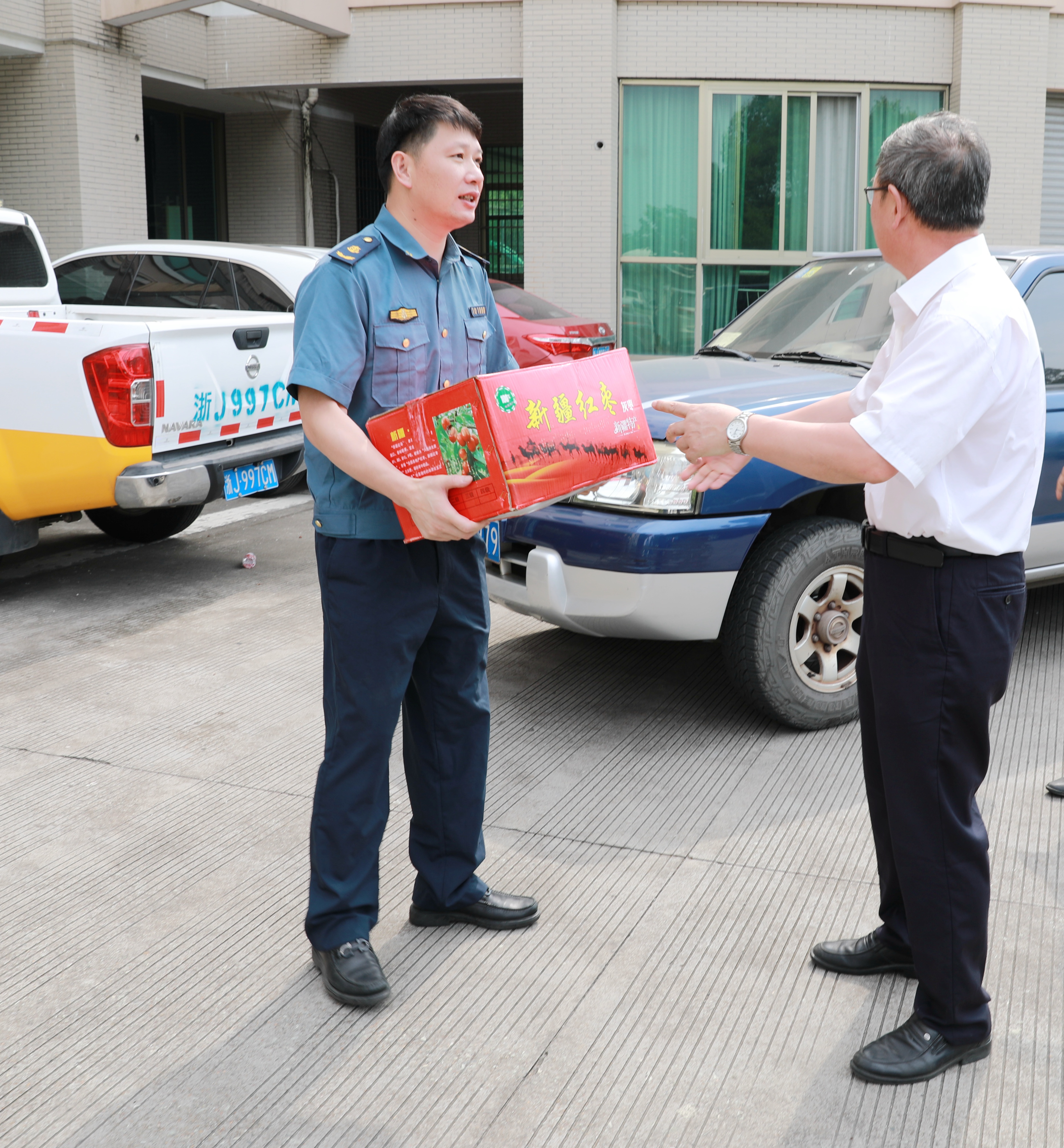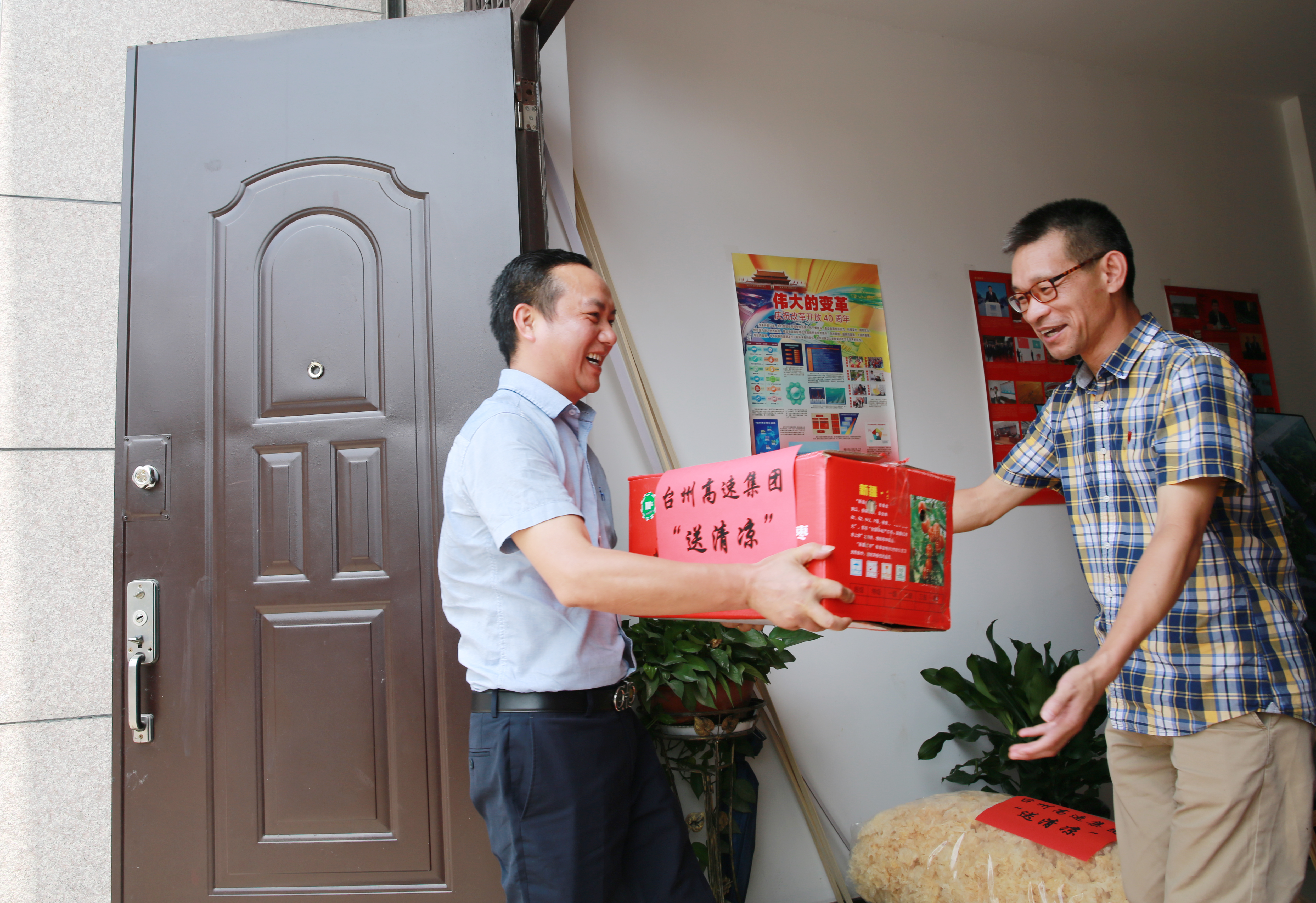 沁人心脾|臺州高速集團開展“夏日送清涼”活動 7月15日上午,臺州高速集團開展“夏日送清涼”活動。集團黨委書記、董事長、總經(jīng)理陳文波,副總經(jīng)理陳保衛(wèi)、羅小將、章海峰、工會主席項同富兵分兩路,帶領送清涼慰問組同志,深入高速交警、路政、匯通養(yǎng)護公司、各收費所、隧道所、中心、子公司等單位看望慰問值守人員并送去慰問品,向冒著高溫酷暑辛勤工作的工作人員表示敬意和慰問。感謝廣大員工在高溫下堅守崗位、辛勤勞動,集團領導親手送上防暑降溫的紅棗、綠豆、蓮子、飲料等物資,為在炎炎夏日中堅持工作的一線廣大人員送去了絲絲清涼。