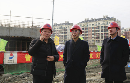 圖為董事長謝文君督查內環(huán)北路(江口段)工地