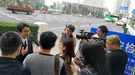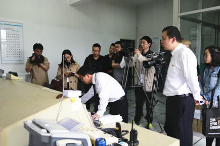 圖為臺(tái)州各媒體記者在溫嶺西收費(fèi)所回看監(jiān)控