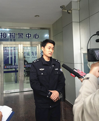 圖為記者在收費(fèi)站附近采訪當(dāng)晚征費(fèi)四班值班班長(zhǎng)鄭星