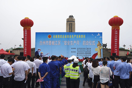 公司參加臺(tái)州市“安全生產(chǎn)月”宣傳活動(dòng) 6月7日上午,公司響應(yīng)臺(tái)州市安全生產(chǎn)委員會(huì)“安全生產(chǎn)月”活動(dòng)號(hào)召,在市國資委的組織下,積極參加市安委會(huì)、椒江區(qū)安委會(huì)聯(lián)合主辦的臺(tái)州市暨椒江區(qū)“安全生產(chǎn)月”啟動(dòng)儀式。