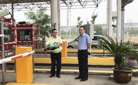 圖為集團副董事長、總經(jīng)理張建平在溫嶺西收費所檢查