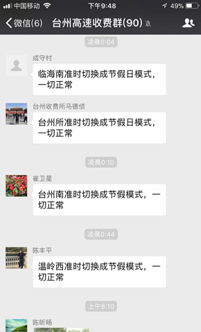 圖為收費模式切換時的微信工作交流群 加強(qiáng)宣傳,主動引車流。集團(tuán)網(wǎng)站、微信公眾號等媒體提前發(fā)布通行提示,解釋國家免費通行政策,引導(dǎo)司乘人員錯峰出行。在各收費所路段進(jìn)口附近重要岔口提前布置臨時限行指示牌,提醒過往貨車避開高峰時段。高速主線上利用電子顯示屏、可變情報板等手段及時通報路況,引導(dǎo)車輛通行。