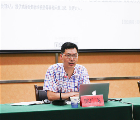 圖為市紀(jì)委黨風(fēng)政風(fēng)監(jiān)督室主任陳廣飛授課